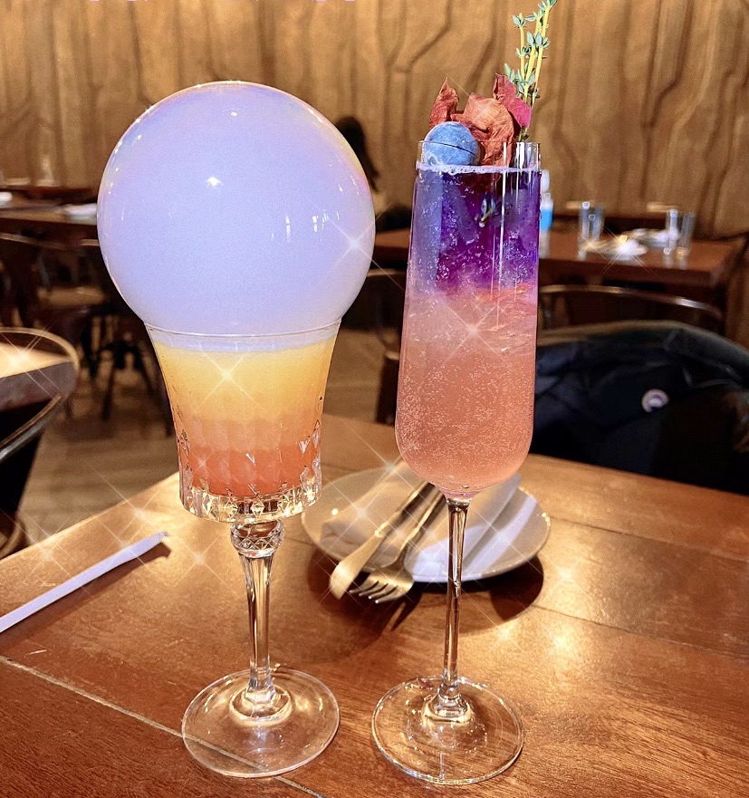 桃子口味的鸡尾酒,上面还有炫酷的烟雾泡泡,视觉和味觉的双重享受!